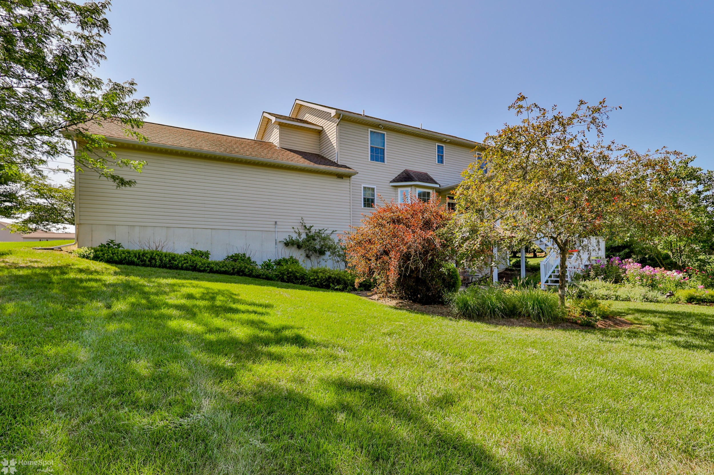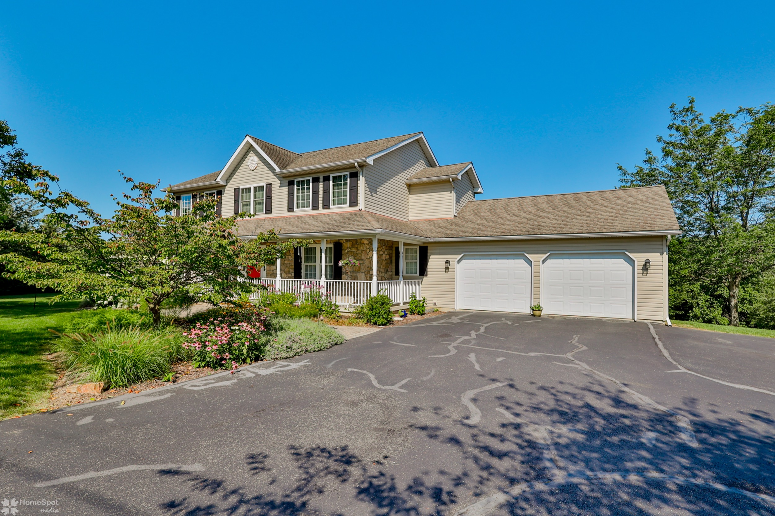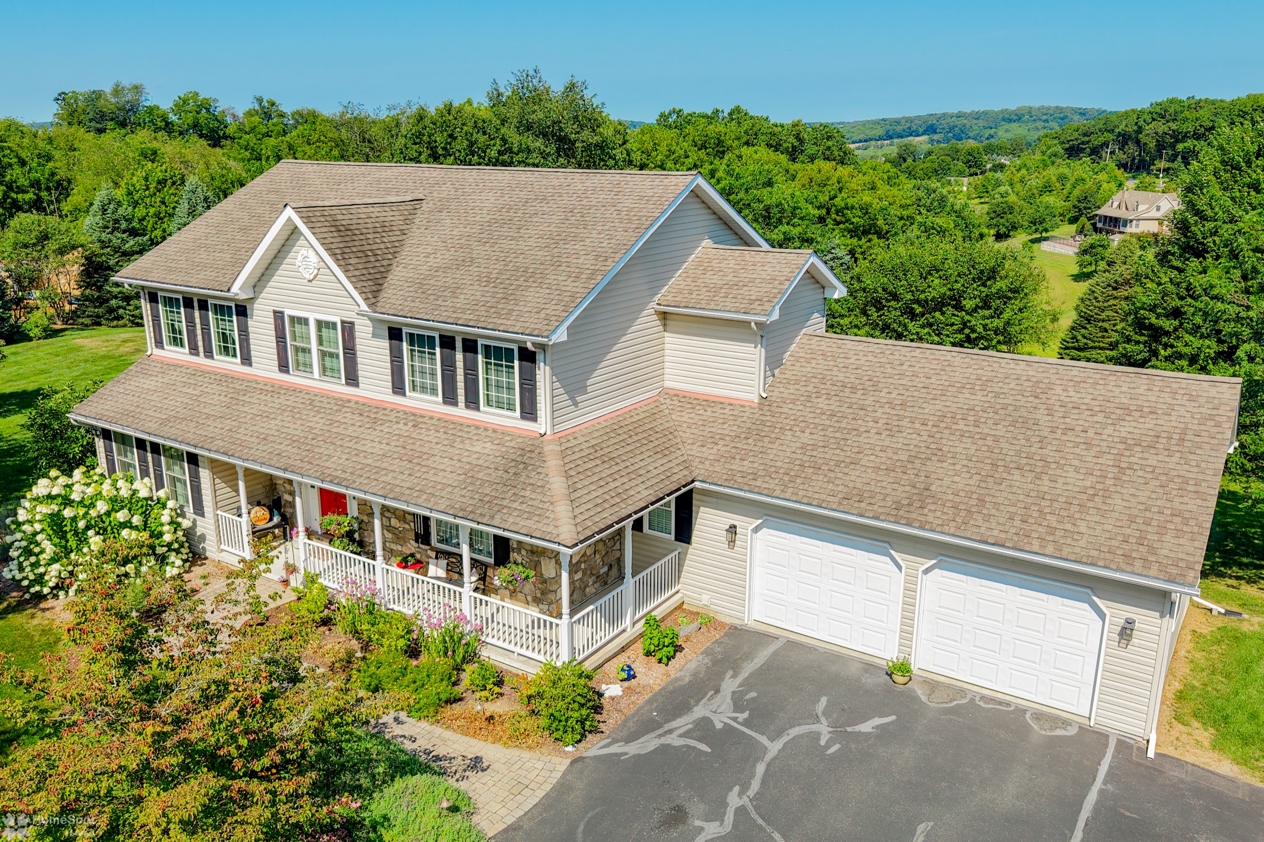 In absolute mint condition and set on 1.78 acres in the desirable Northwestern School District, this timeless 2-story farmhouse style home built in 2004, blends classic charm with modern comfort. A welcoming wrap-around porch and paver walkway lead to sun-filled interiors designed for relaxed living and easy entertaining. The renovated 2023 kitchen is a showpiece—featuring Quartz counters, tile backsplash, center island, Bosch stainless-steel oven, dishwasher, induction cooktop, convection microwave, recessed lighting, pantry closet, and a charming bay window in the breakfast area. The adjoining family room with propane fireplace opens through sliding doors to a covered deck (roof new in 2015) offering panoramic countryside views and a 21x18 paver patio below. The first floor also includes a living room with wall of windows, formal dining room, powder room, and laundry. Gleaming hardwood floors were added in 2014. Upstairs, the spacious primary suite includes an updated ensuite bath (2012), three additional bedrooms, and a full hall bath. The walk-out lower level adds 762 sq. ft. of finished living space, half bath, and ample storage. Portable generator that you can plug into a custom electrical panel in the basement. Truly move-in ready and picture-perfect!