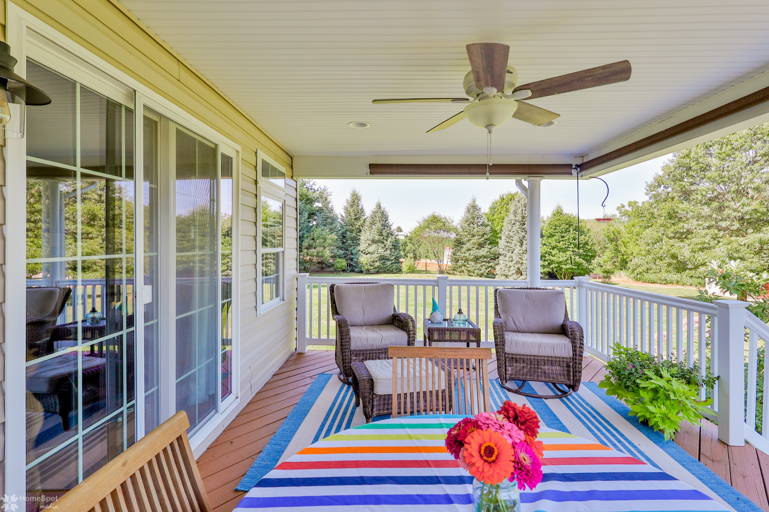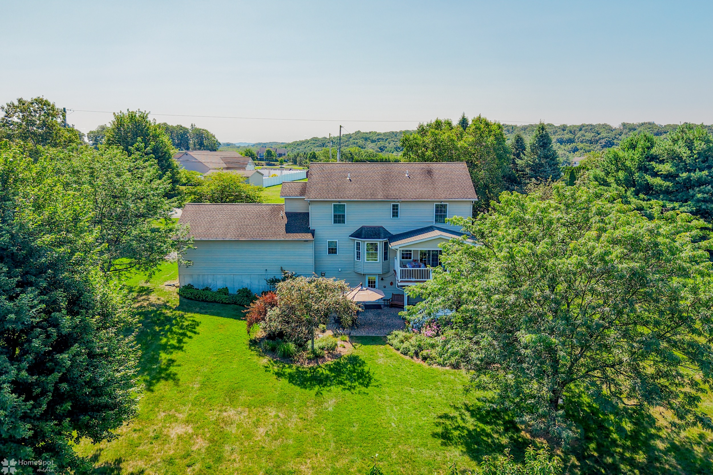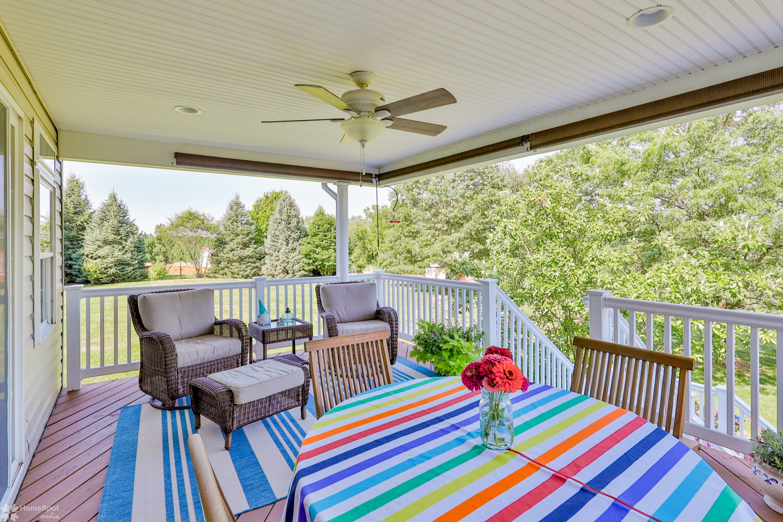 In absolute mint condition and set on 1.78 acres in the desirable Northwestern School District, this timeless 2-story farmhouse style home built in 2004, blends classic charm with modern comfort. A welcoming wrap-around porch and paver walkway lead to sun-filled interiors designed for relaxed living and easy entertaining. The renovated 2023 kitchen is a showpiece—featuring Quartz counters, tile backsplash, center island, Bosch stainless-steel oven, dishwasher, induction cooktop, convection microwave, recessed lighting, pantry closet, and a charming bay window in the breakfast area. The adjoining family room with propane fireplace opens through sliding doors to a covered deck (roof new in 2015) offering panoramic countryside views and a 21x18 paver patio below. The first floor also includes a living room with wall of windows, formal dining room, powder room, and laundry. Gleaming hardwood floors were added in 2014. Upstairs, the spacious primary suite includes an updated ensuite bath (2012), three additional bedrooms, and a full hall bath. The walk-out lower level adds 762 sq. ft. of finished living space, half bath, and ample storage. Portable generator that you can plug into a custom electrical panel in the basement. Truly move-in ready and picture-perfect!